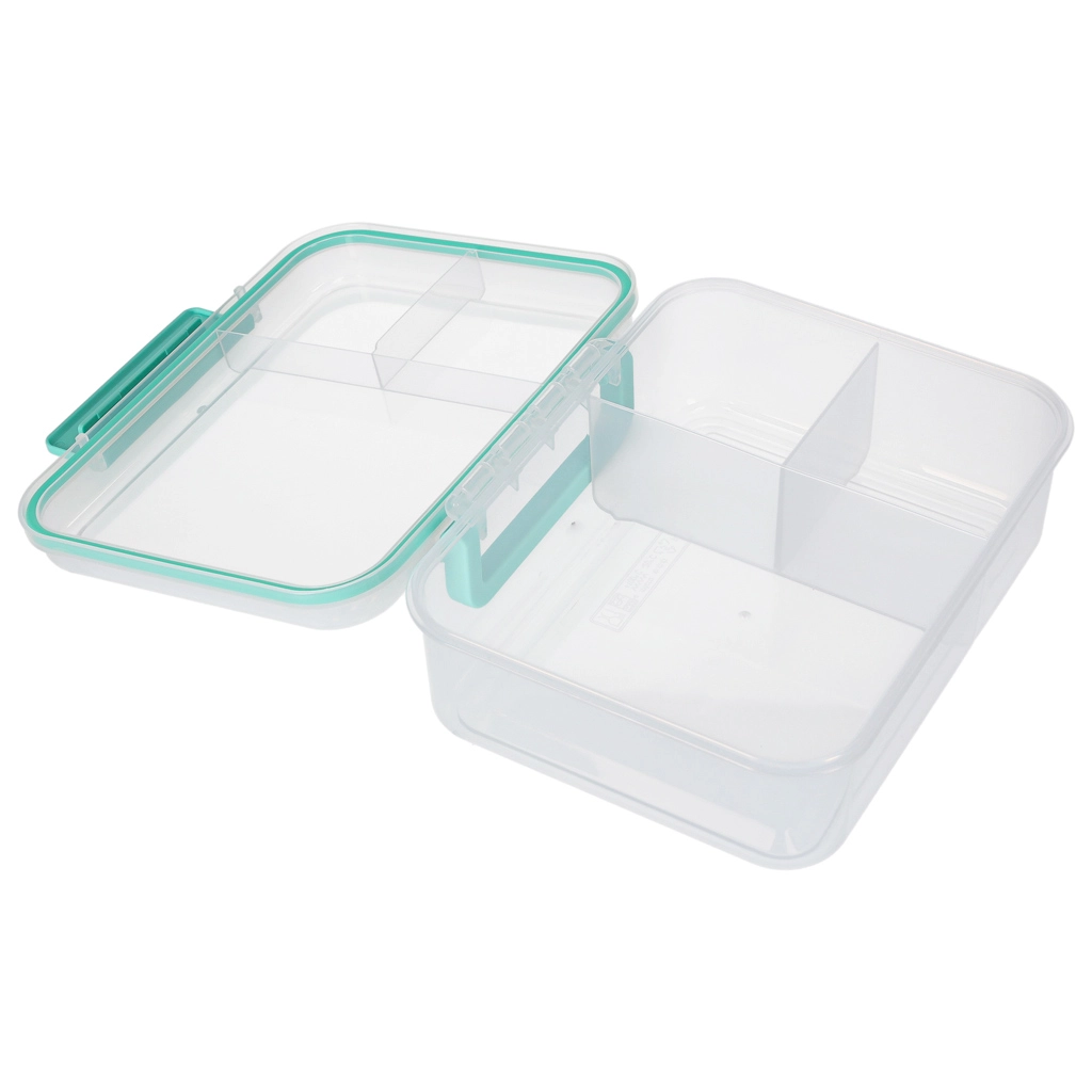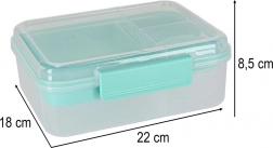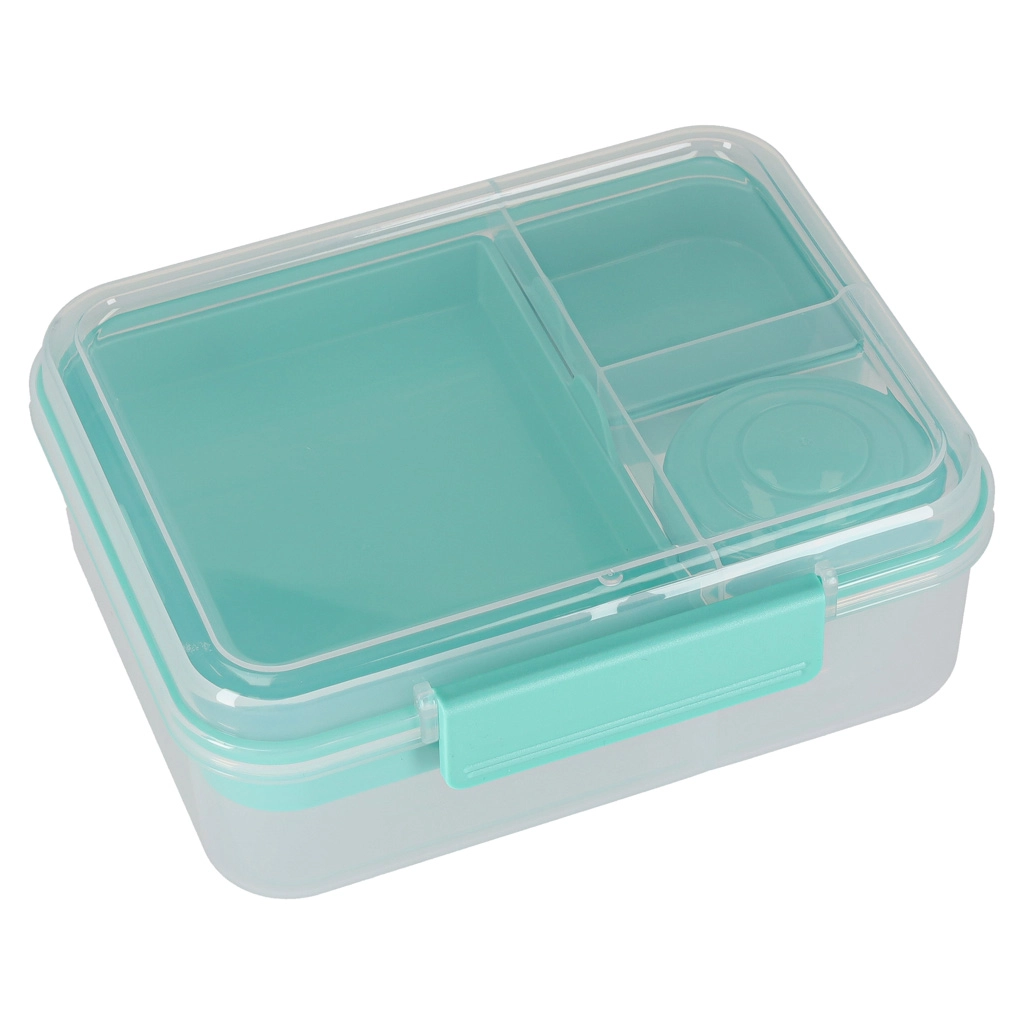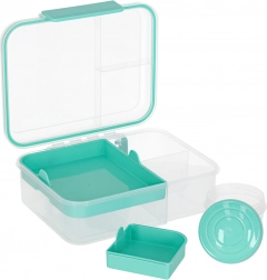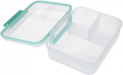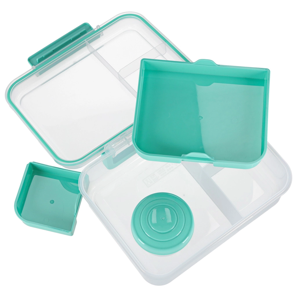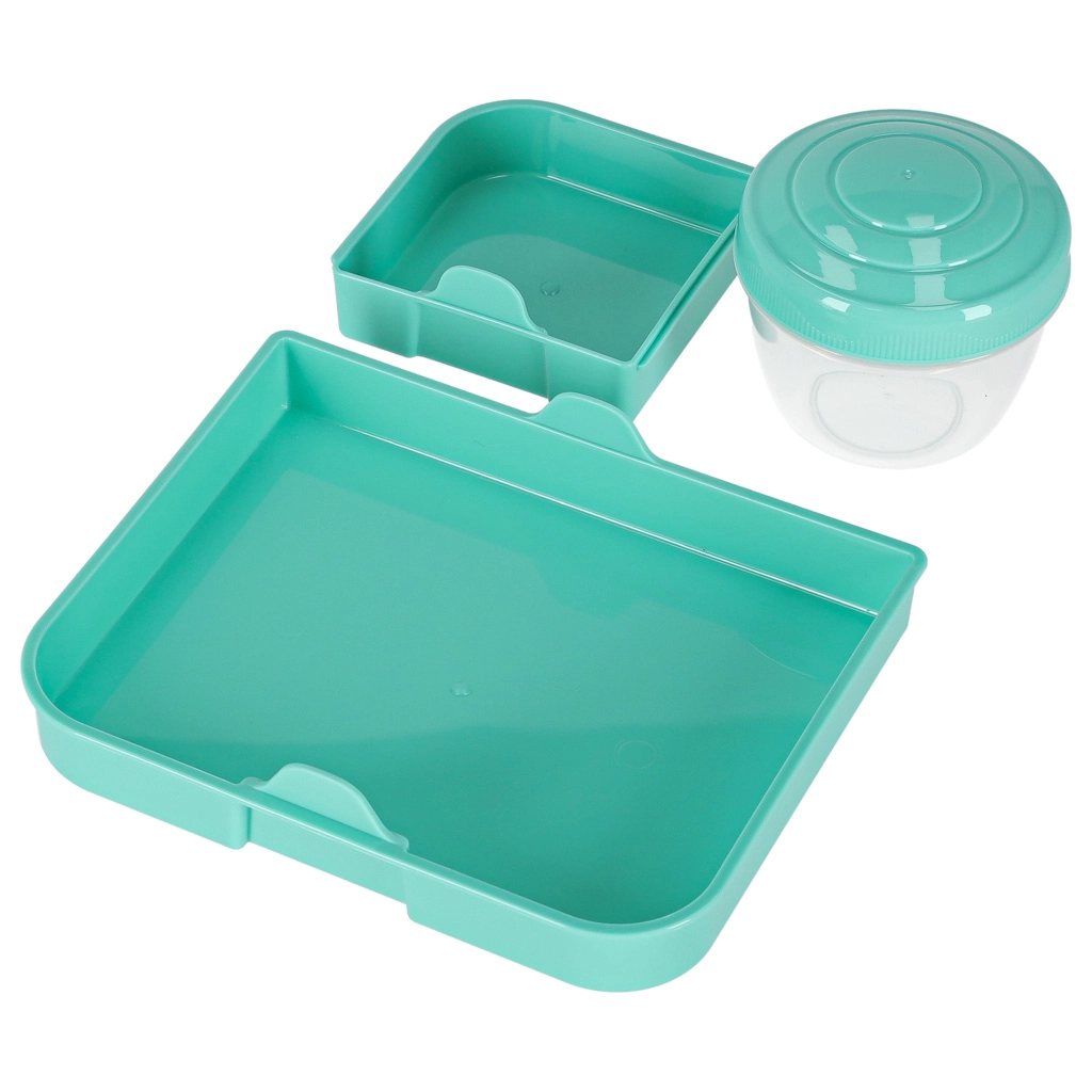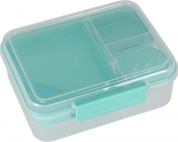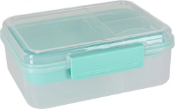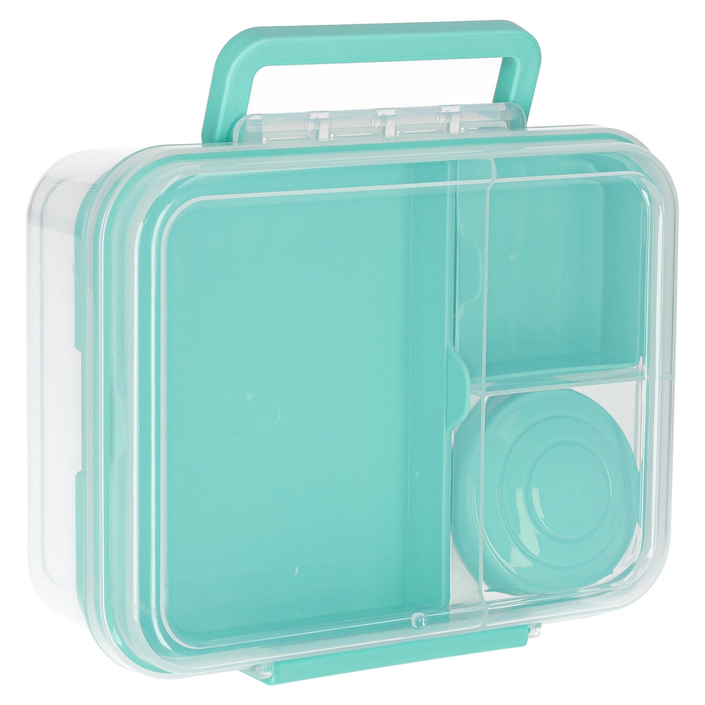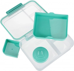 Moderní box na jídlo v mátové barvě nabízí velký objem a chytré členění pro každodenní zdravé stravování. Modulární vložky a vyjímatelná patra umožní oddělit sendviče, saláty, ovoce i svačinky. Průhledné prvky usnadní rychlou kontrolu obsahu, lehká konstrukce se skvěle přenáší.