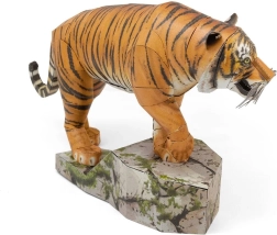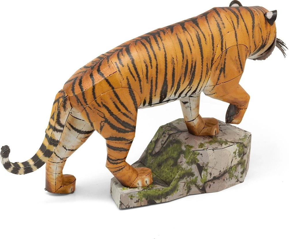 Objevte radost z precizního modelářství s kovovým 3D puzzle tygra bengálského. Díly jednoduše vyjmete z plátků oceli a pomocí zámků je k sobě připojíte, až vznikne realistický mistrovský kousek. Díky detailnímu laserovému gravírování vyniknou pruhy i svalnaté tvary šelmy.