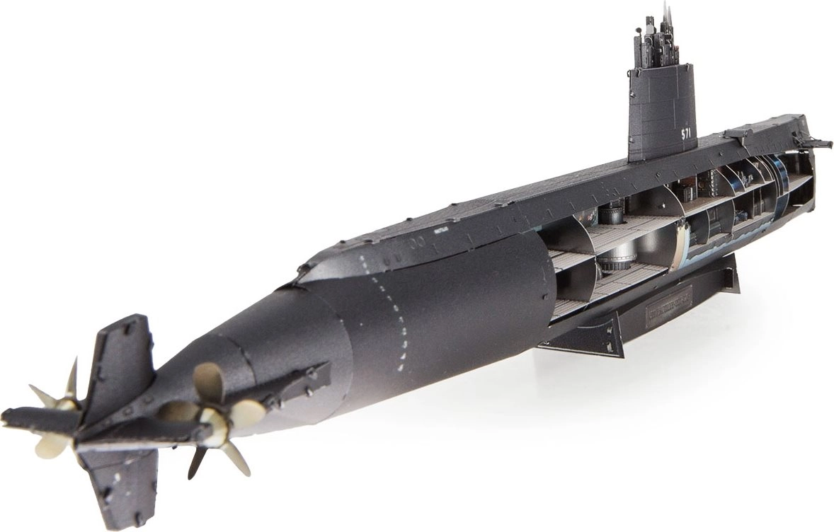 Detailní gravírování a segmenty trupu zvýrazňují technologii ponorky, včetně věže, periskopů a torpédových sekcí – působivý vzhled na každé polici.