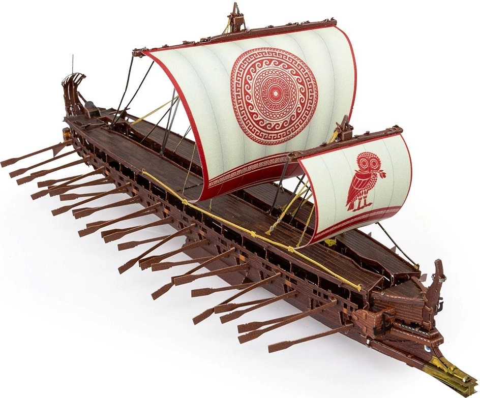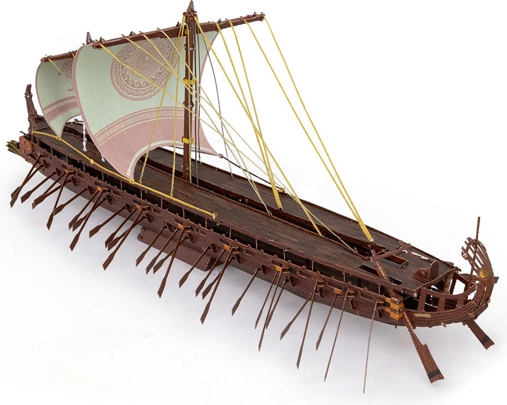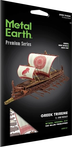 Objevte kouzlo antického námořnictva s kovovým 3D modelem řecké trirémy. Série METAL EARTH Premium nabízí extra jemné detaily díky laserovému gravírování, které podtrhuje plachty, vesla i palubní výbavu. Model je určen všem, kdo milují precizní práci, historii i designové doplňky.