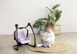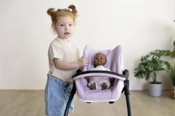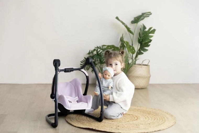 Tento promyšlený set 3v1 promění péči o panenky v realistovou a zábavnou hru. Autosedačku snadno zavěsíte do rámu a rázem z ní je jemná houpačka. Otočením konstrukce získáte vysokou jídelní židličku s pultíkem – ideální pro krmení panenek do 42 cm. Robustní konstrukce a měkké polstrování zajišťují pohodlí panenky i stabilitu při každodenním hraní.