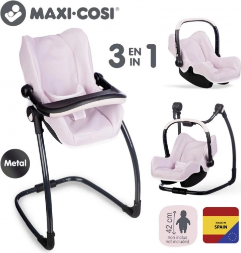 Univerzální set pro malé pečovatelky: autosedačka, houpačka a vysoká jídelní židlička pro panenky do 42 cm v jednom. Díky chytré konstrukci snadno přepnete mezi režimy a užijete si hravé krmení i houpání. 3v1 provedení, stabilní rám, odnímatelný pultík a komfortní polstrování ve světle růžové barvě podporují bezpečnou a kreativní hru.