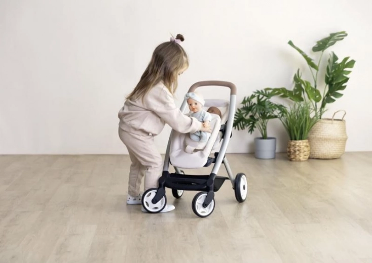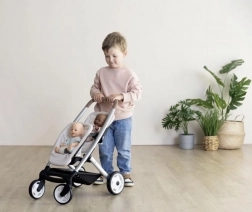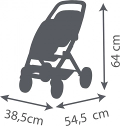 Kočárek nabízí dvě sedadla, z nichž přední je vybaveno bezpečnostním pásem pro stabilní usazení panenky. Potahy z robustní syntetické tkaniny stačí jednoduše otřít vlhkou houbičkou. Vhodné pro panenky do 42 cm. Dodává se bez panenky.