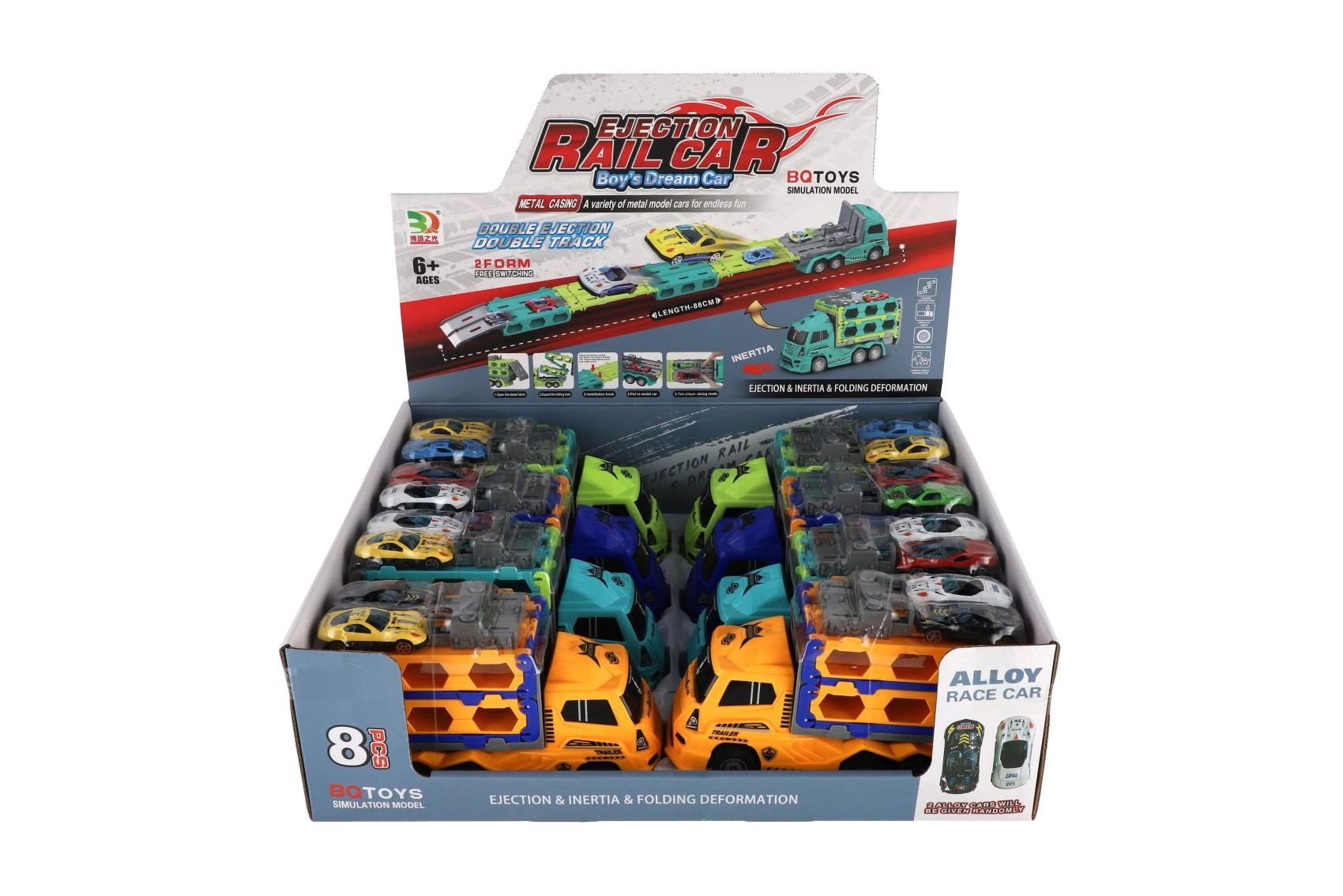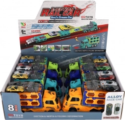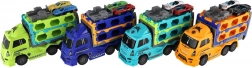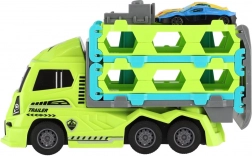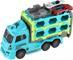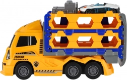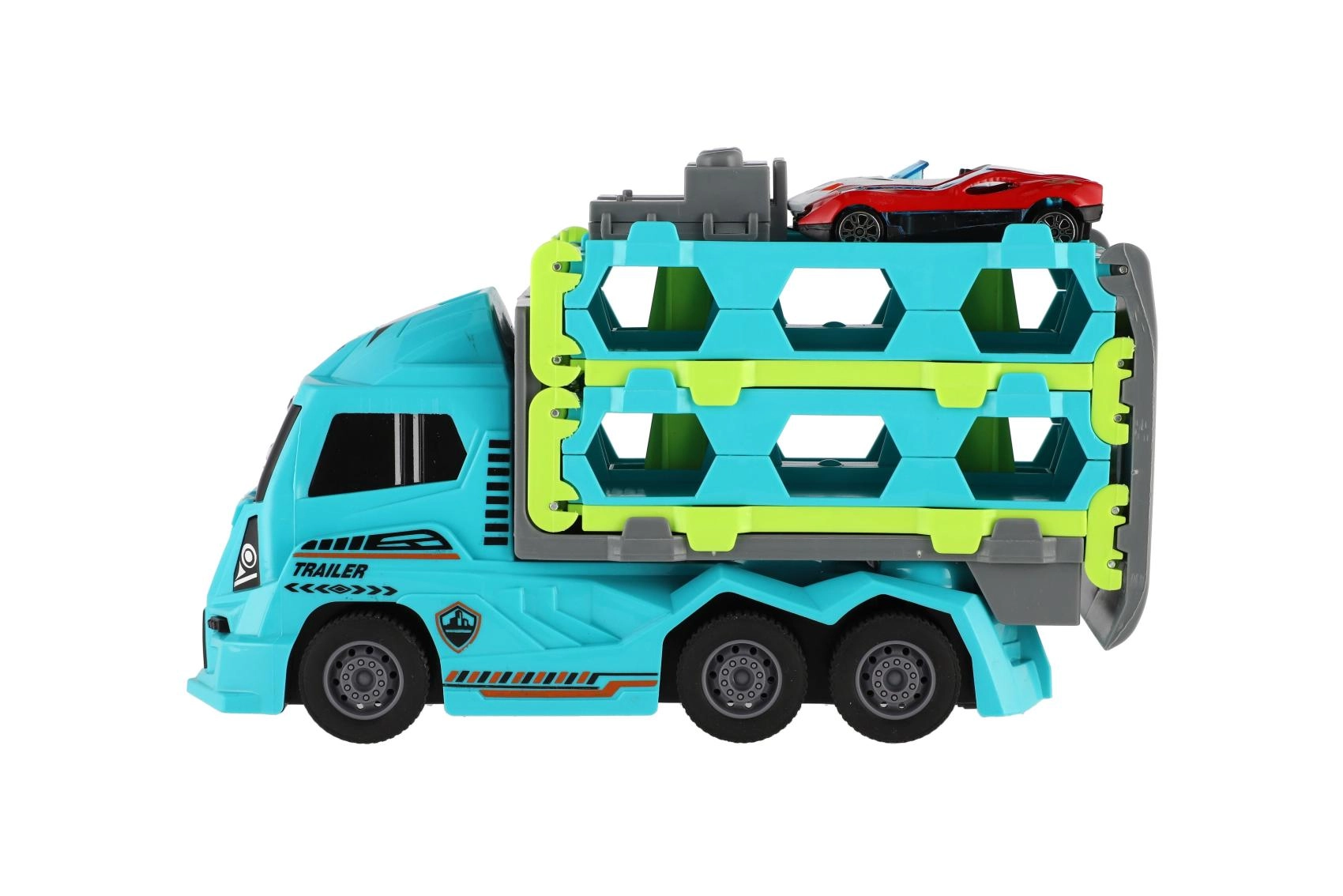Dopřejte dětem akční jízdu s tímto plastovým kamionem – přepravníkem závodních aut. Součástí jsou 2 sportovní autíčka, kamion má setrvačník pro rychlou jízdu a délku 22 cm. Skvělý pro hraní doma i venku, podporuje fantazii a motorické dovednosti malých řidičů.