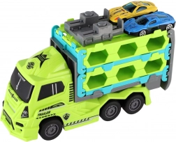 Kamion je k dispozici v několika pestrých barvách a zaujme výraznými detaily a úložnými sloty pro autíčka.
