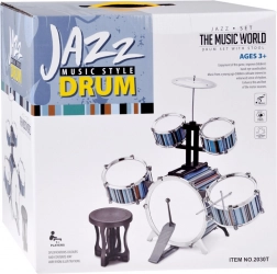 Souprava obsahuje 5 bubnů, činel, 2 paličky a taburetku – děti mohou hned začít hrát a učit se základní rytmy.