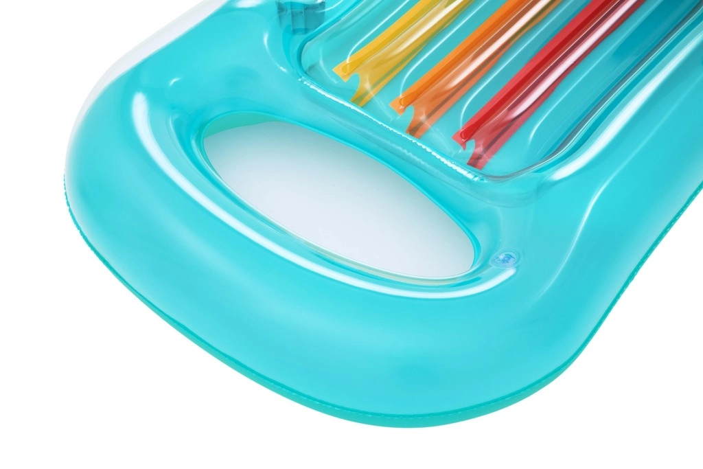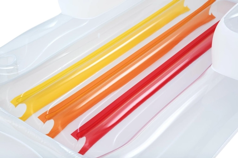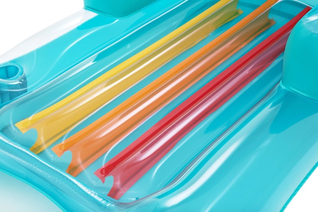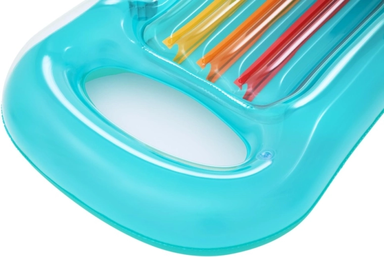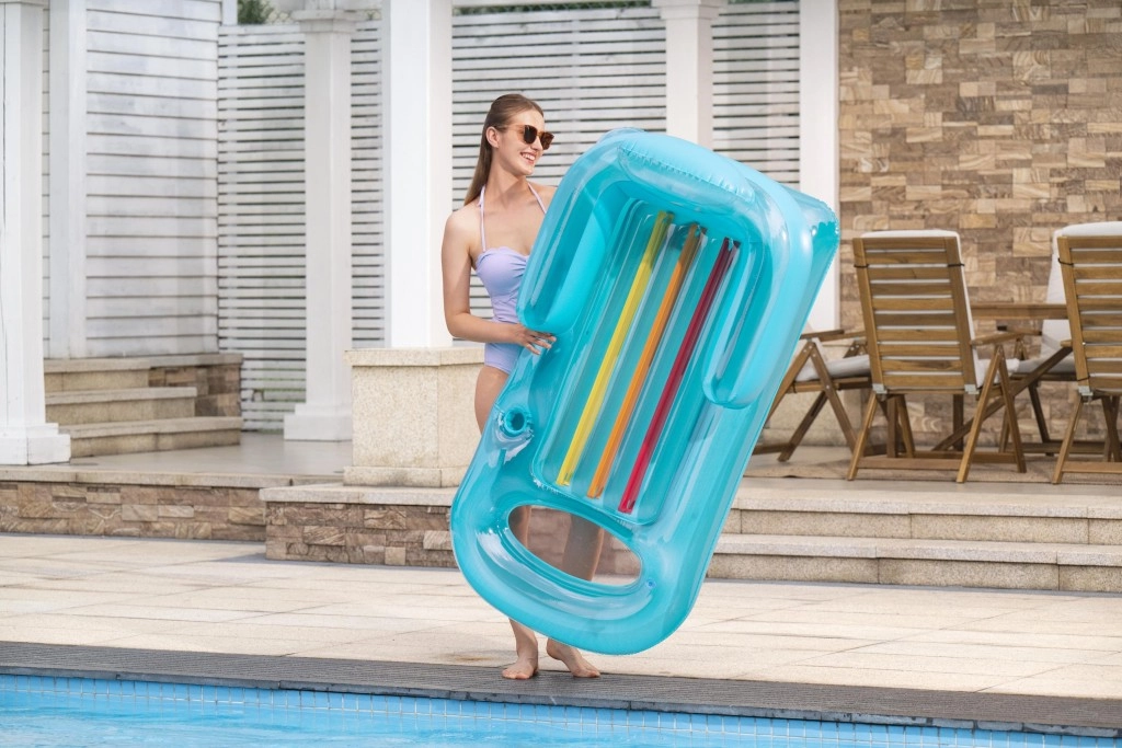 Dvoukomorová konstrukce zvyšuje stabilitu na hladině a bezpečnost. Lehátko se rychle nafukuje i vyfukuje, je lehké a po sbalení zabere minimum místa – perfektní na dovolenou i víkend u bazénu.