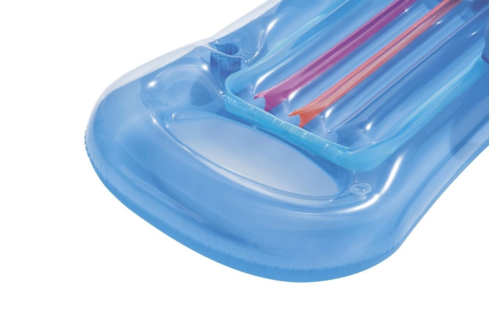 Toto stylové modré lehátko kombinuje pohodlí a stabilitu. Vyvýšené područky a ergonomická opěrka zad i hlavy udrží vaše tělo v komfortní poloze, zatímco více vzduchových komor zajišťuje dobrou vztlakovou stabilitu. Integrovaný držák nápoje vám umožní vychutnat si oblíbený drink bez nutnosti vystupovat z vody.
