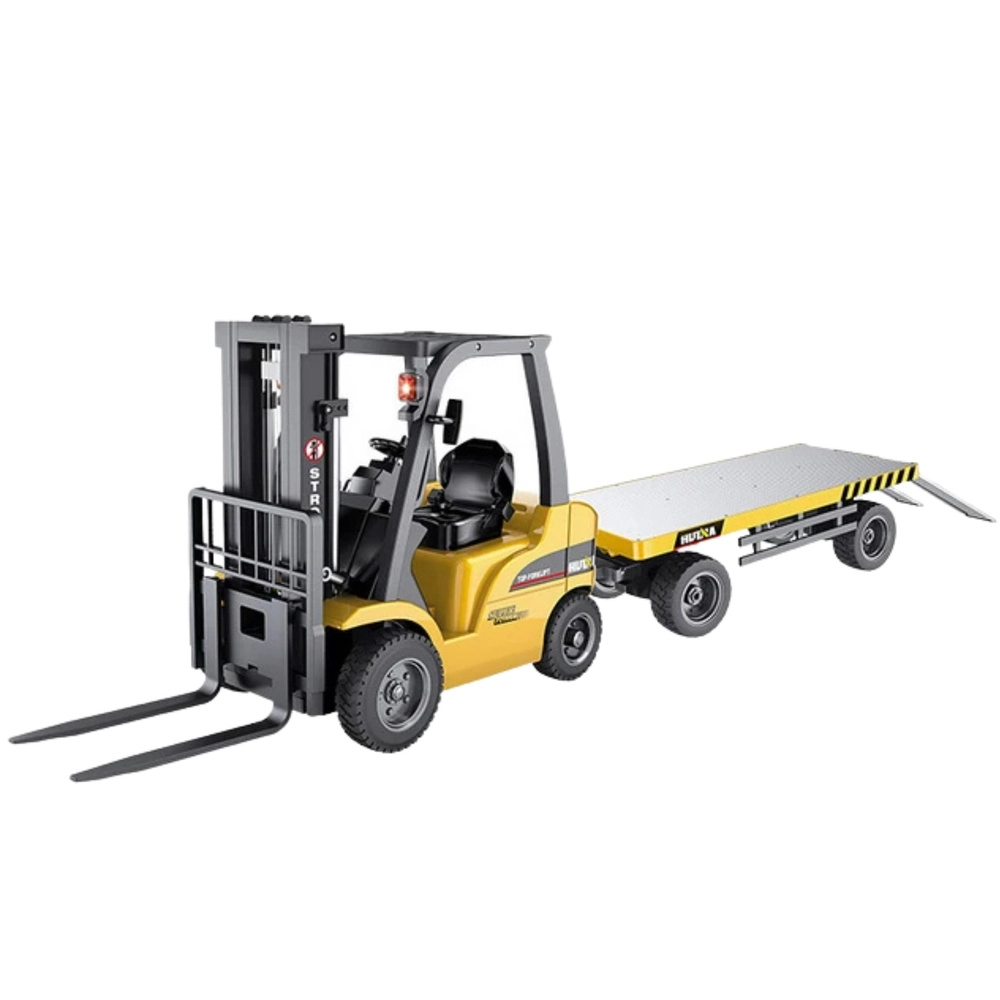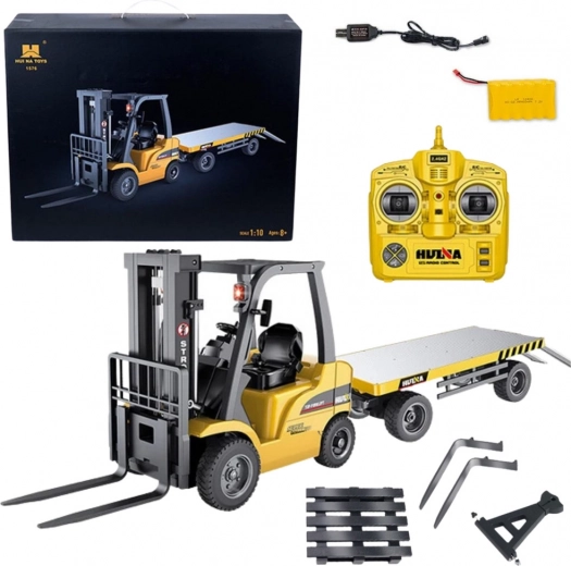 Realistický vysokozdvižný vozík s přípojným vozíkem v měřítku 1:10 potěší malé i velké fanoušky techniky. Nabízí plné dálkové ovládání, zvedací a spouštěcí vidlice, světelné a zvukové efekty a pevnou konstrukci pro dlouhé hodiny zábavy.