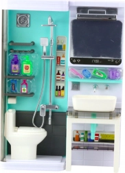 Tento detailně zpracovaný koupelnový set přenese děti do světa každodenních činností. Najdou v něm toaletu, umyvadlo se zrcadlem s podsvícením, sprchu a pestrou sadu doplňků pro péči o tělo a zuby. Interaktivní světla a zvuky dodávají hře na autentičnosti a zábavě.