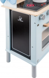 Stylová dětská kuchyňka ve světle modré barvě potěší malé kuchaře od 3 let. Nabízí realistické prvky jako troubu, mikrovlnku a umyvadlo s kohoutkem, doplněné o bohaté příslušenství. Skvělá hračka pro rozvoj jemné motoriky, kreativní hru rolí a fantazii.