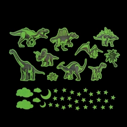 Proměňte pokoj v pravěký svět díky samolepkám dinosauřů, které po nasvícení ve tmě jemně září. Instalace je rychlá a čistá – stačí sloupnout a nalepit na hladký, suchý povrch. Ideální pro dětské pokoje, herny nebo jako originální dekorace na nábytek.