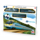 Postavte si vlastní kolejiště a vydejte se na cesty s realistickou vlakovou soupravou Pendolino MINI. Souprava obsahuje přední a zadní lokomotivu, 1 osobní vagón a sadu rovných i zahnutých kolejí pro sestavení dráhy až do 96 × 58 cm. Lokomotiva jezdí na 1× AA baterii a snadno ji uvedete do provozu pomocí spínače ON/OFF. Kompatibilní s vlaky REGIOJET MINI a SLOVENSKÉ DRÁHY MINI.