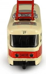 Tato kovová tramvaj T3 o délce cca 16 cm věrně zachycuje legendu městských kolejí – nejrozšířenější tramvajový vůz na světě. Robustní zpracování v kombinaci s precizními detaily, pantografem a dvoubarevným lakem dodává modelu realistický vzhled pro sběratelské vitríny i kreativní hraní.