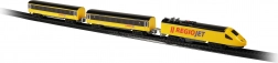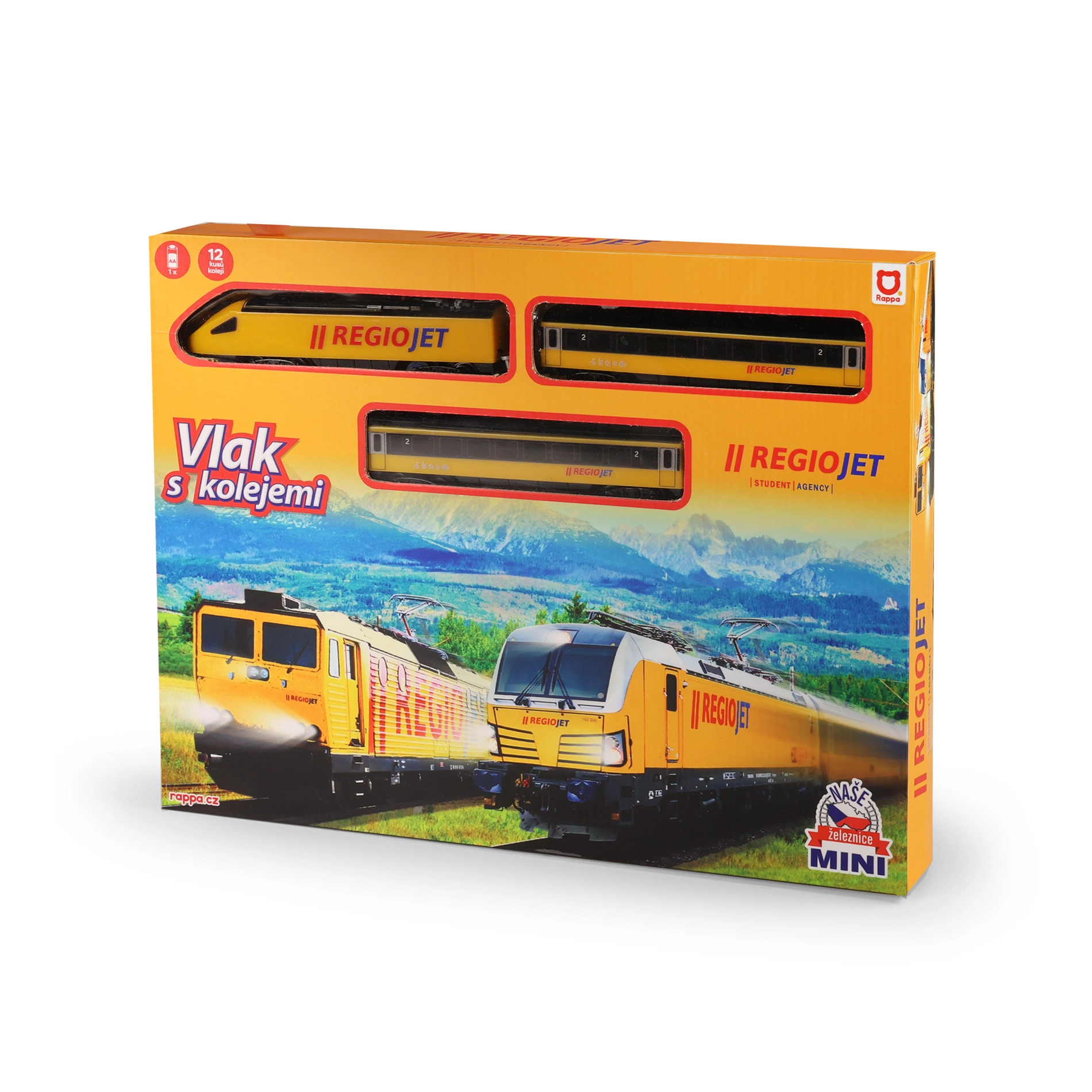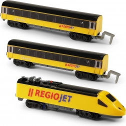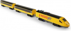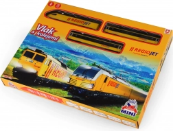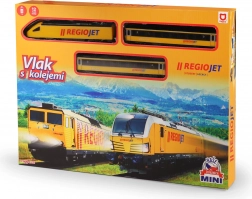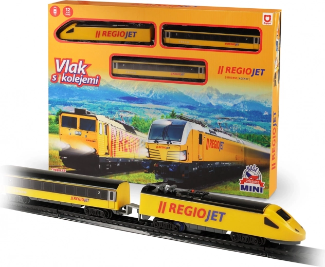 Objevte zábavu z vláčků s kompaktním setem RegioJet MINI. Žlutá lokomotiva s dvěma vagóny jezdí po modulárním kolejišti, které snadno sestavíte z 8 zahnutých a 4 rovných dílů. Díky praktickému vypínači na střeše lokomotivy je ovládání naprosto jednoduché, takže se děti mohou rychle pustit do hry.