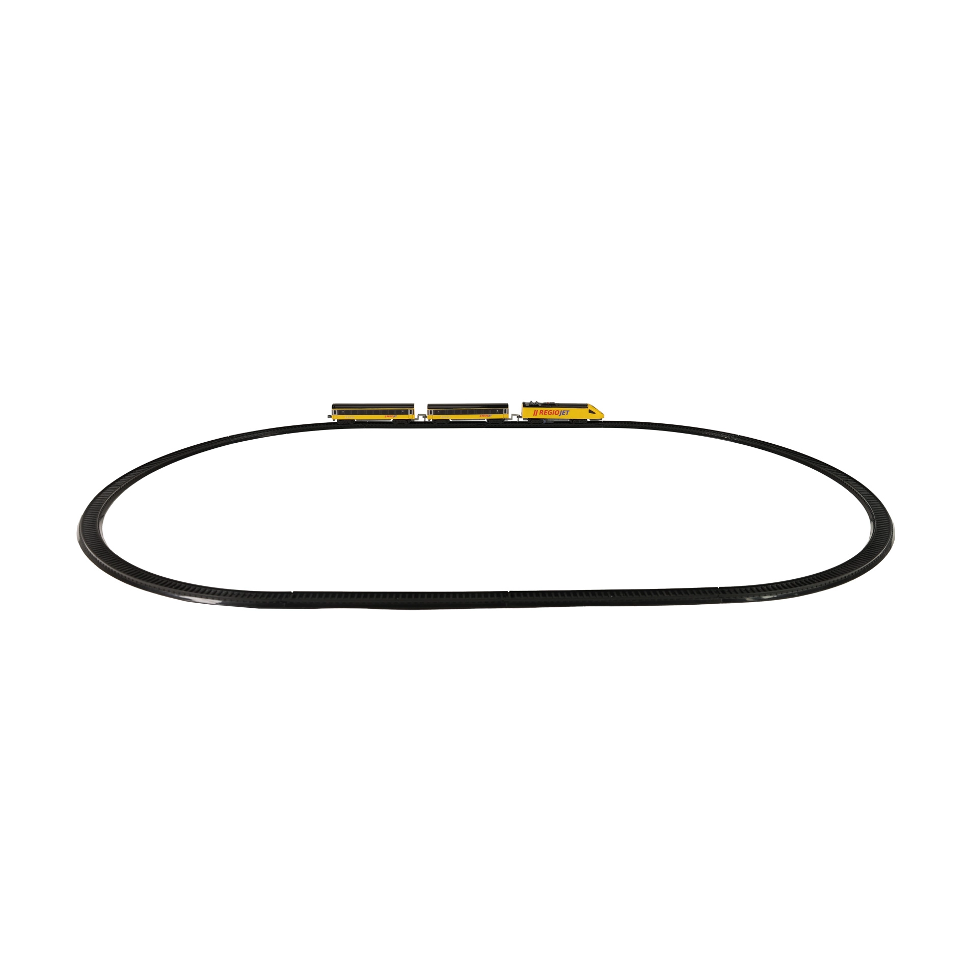Souprava obsahuje zahnuté i rovné koleje, ze kterých sestavíte uzavřený okruh pro nepřetržitou jízdu vlaku.