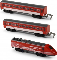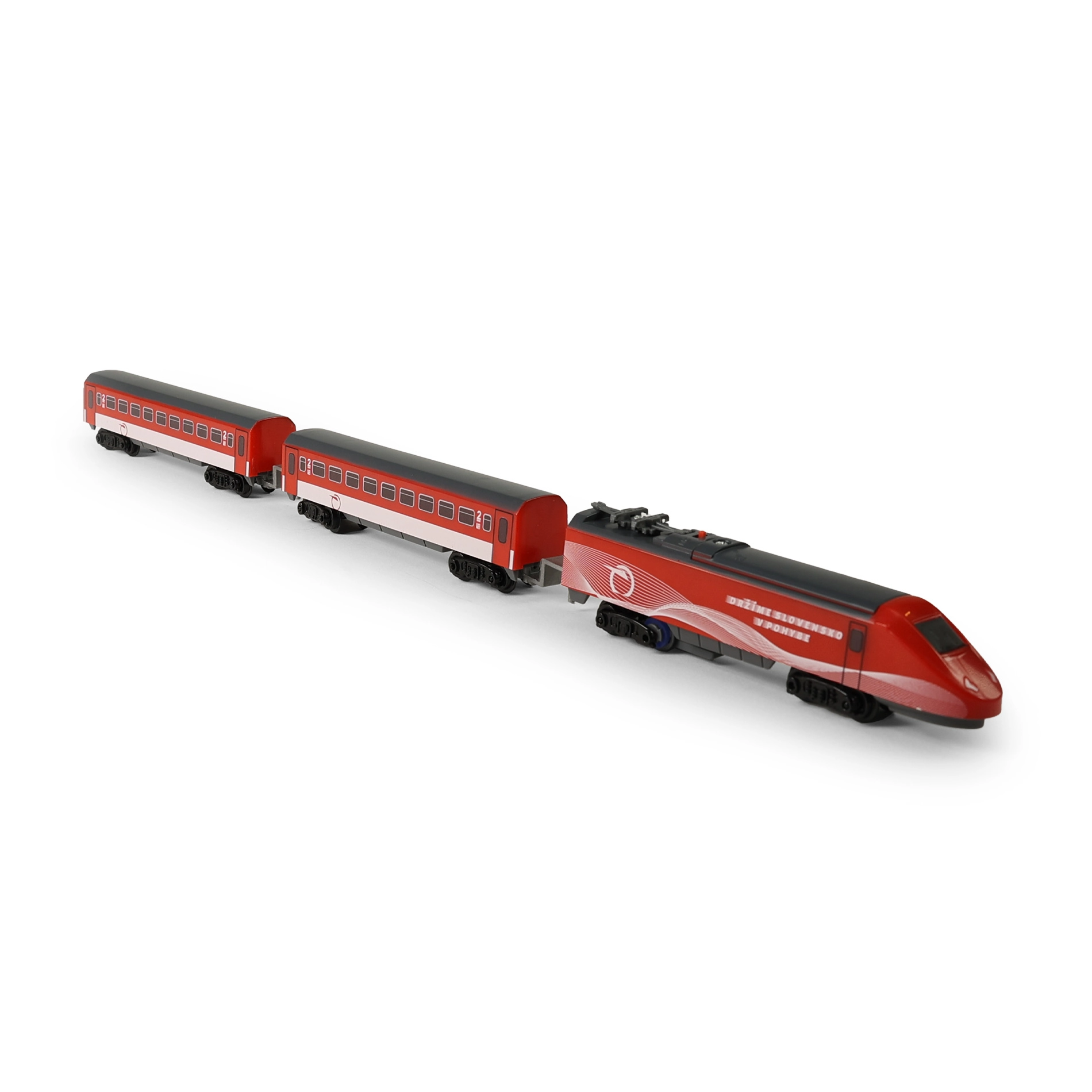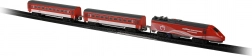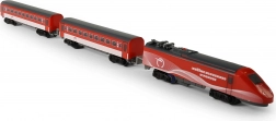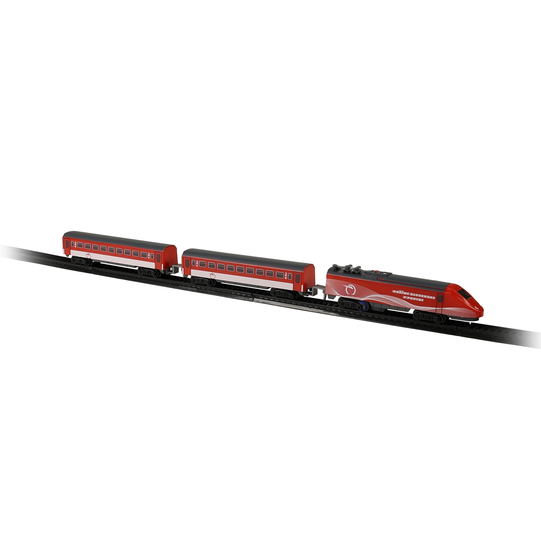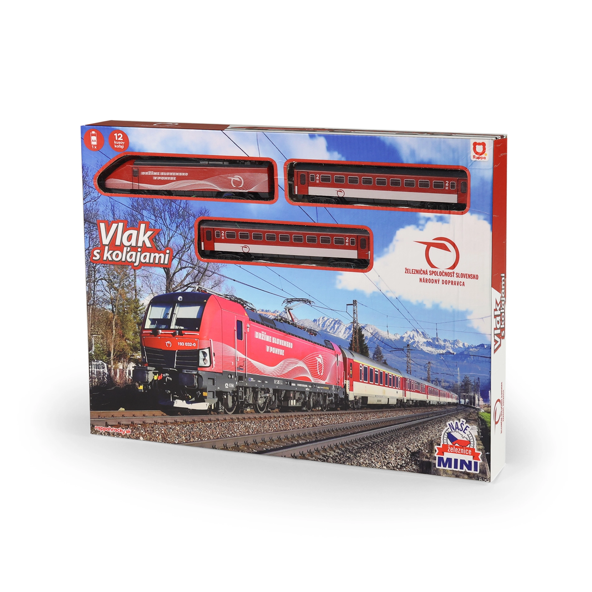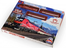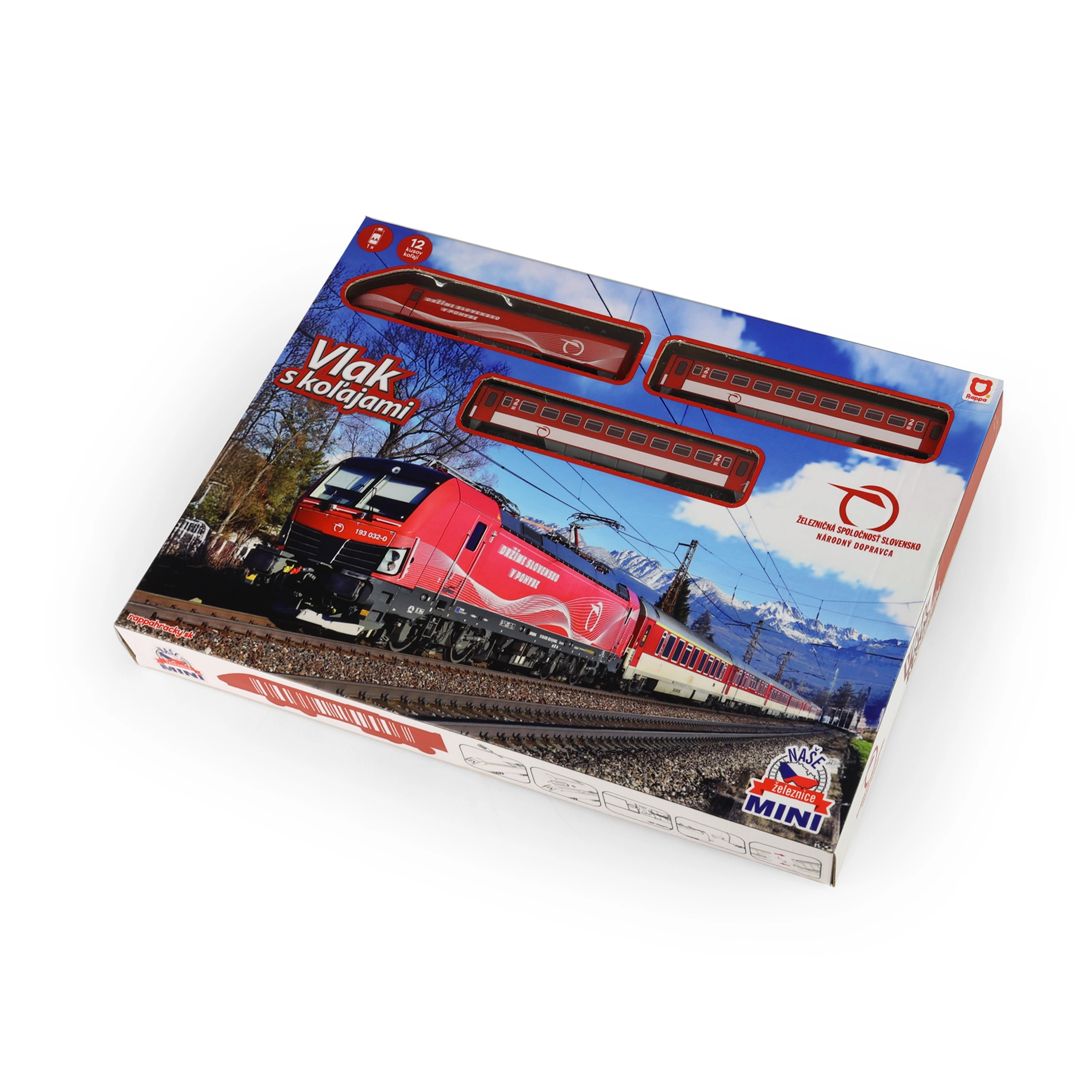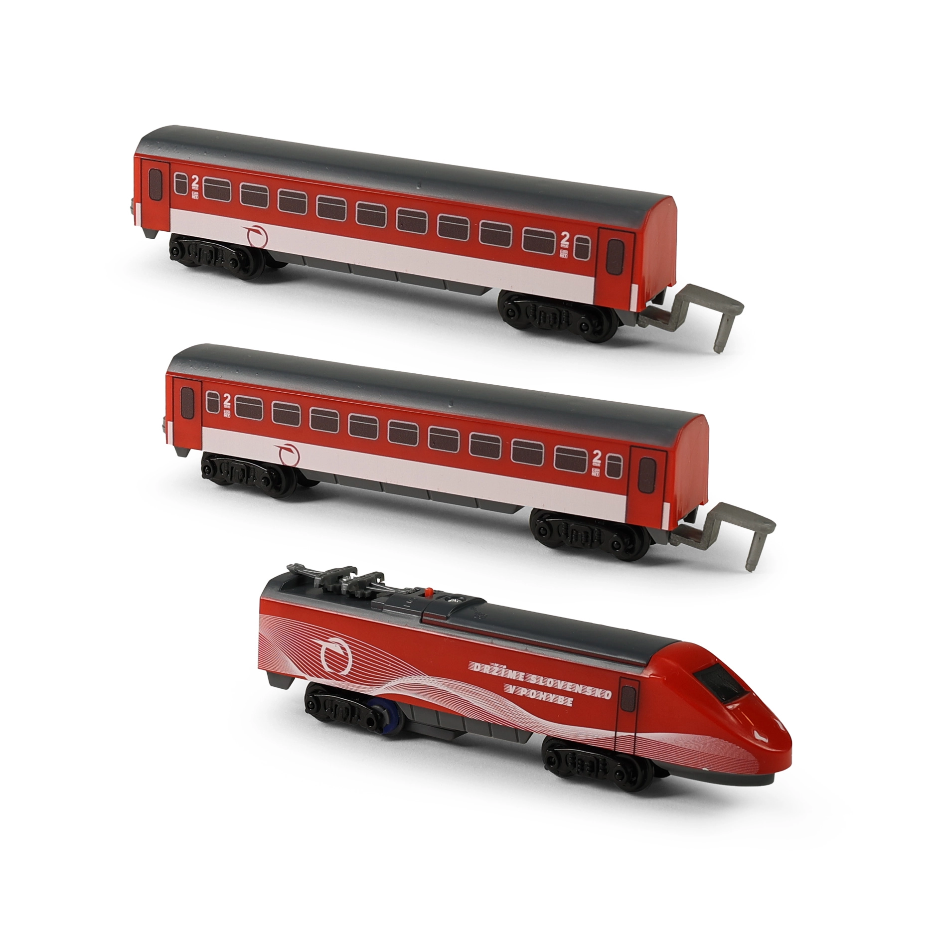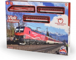 Souprava zahrnuje lokomotivu dlouhou 14 cm a dva osobní vagóny (13,5 cm), které propojují realistické spřáhly. Koleje s roztečí 1,4 cm poskládáte do okruhu až 96 × 58 cm. Jednoduchý vypínač na střeše lokomotivy umožní rychlé zapnutí a vypnutí. Kompatibilita s dalšími sety rozšíří trať i vozový park.