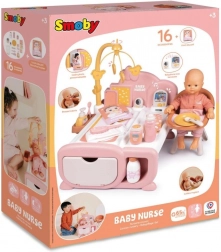 Elektronický koutek Baby Nurse SMOBY je perfektní volbou pro malé pečovatele a pečovatelky. Tři herní zóny – kuchyňka s krmícím křesílkem, pečující stanice a postýlka s kolotočem – podporují kreativní hru a rozvoj jemné motoriky, empatie i fantazie. Integrovaná atrapa kamery a elektronická chůvička se zvukem přidávají autentický zážitek z péče o miminko.