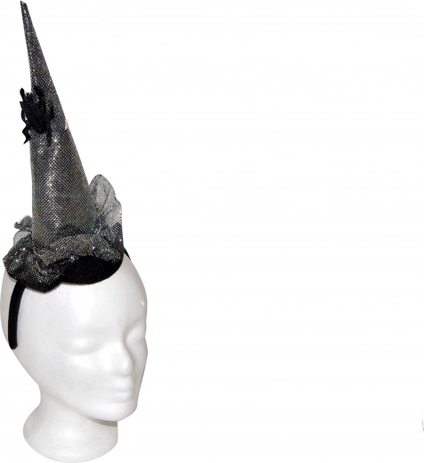 Dodajte svému kostýmu čarodějnice správný šmrnc s tímto elegantním špičatým kloboukem na čelence. Černé provedení je nadčasové a snadno se kombinuje s jakýmkoli převlekem. Díky čelence klobouk pevně sedí, neklouže a je pohodlný i při delším nošení.
