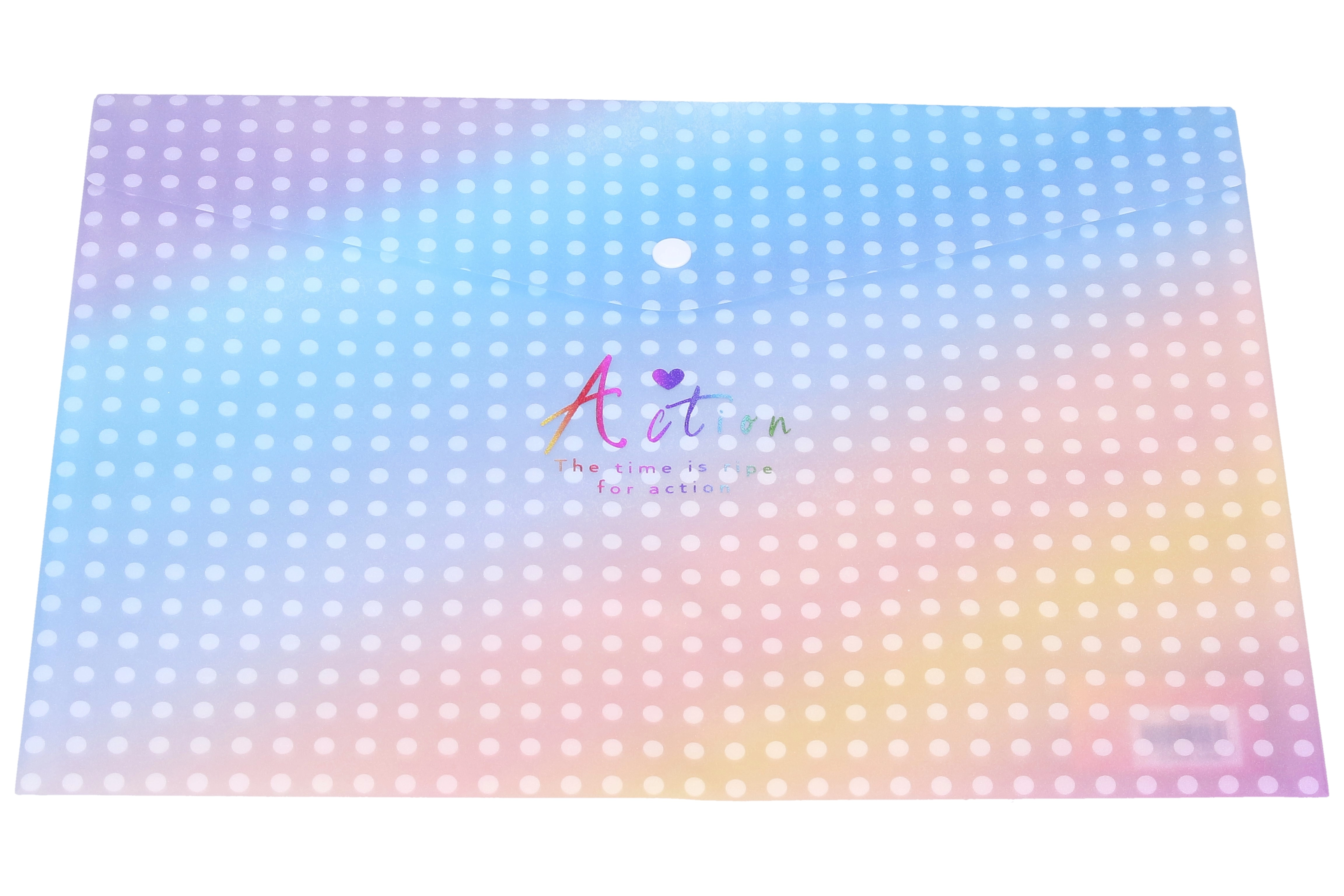 Vyberte si z několika atraktivních pastelových designů – puntíky, mřížka, crackle efekt nebo geometrické tvary. Poloprůhledný materiál usnadňuje identifikaci obsahu, některé varianty mají i štítkové okénko pro popis. Rozměr 33 × 23 cm pohodlně pojme formát A4 i volné listy, sešity nebo tenké katalogy.