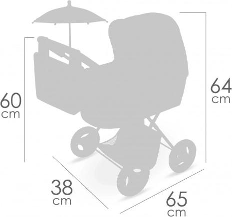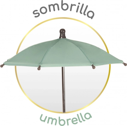Kočárek je skvěle vybaven pro každodenní hraní – od skládacího slunečníku přes odnímatelnou tašku se zlatými zipy až po měkkou matraci a prostorný koš na drobnosti. Precizní zpracování a španělský design podtrhují jeho kvalitu a dlouhou životnost.