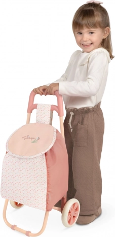 Dětská taška na kolečkách Tulipe v teplých pastelových odstínech lososové barvy nabízí praktický úložný prostor s klopou a stahováním. Lehká konstrukce z kovu a plastu, měkké madlo a velká zadní kolečka zajišťují pohodlné ovládání i pro nejmenší.