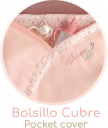 Praktické detaily potěší při každodenním hraní: otočná přední kolečka pro plynulou jízdu, úložný košík na drobnosti, kapsa na boudičce s textilním tulipánem a rolničkou a ozdobný kryt korbičky se suchými zipy a kapsičkou. Kočárek je skládací, takže nezabere mnoho místa a snadno se převáží autem.