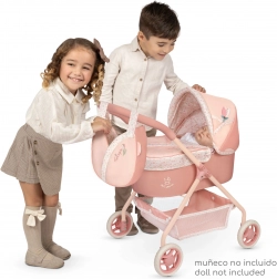 Okouzlující kočárek pro panenky z kolekce Tulipe přináší kombinaci nádherného španělského designu a praktičnosti pro každodenní hraní. Jemné lososové pastelové barvy s květinovým vzorem a tematická taška ve tvaru tulipánu z něj dělají skvělý dárek pro děti od 3 let.