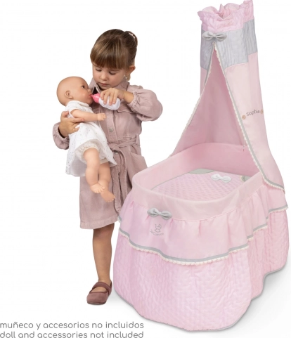 Tato romantická postýlka pro panenky v jemně růžovém provedení s šedivými a bílými detaily z kolekce Sophie vyniká nadčasovým vzhledem a pohodlnou manipulací. Díky otočným kolečkům ji dítě snadno převeze z pokojíčku do kterékoliv místnosti a bude mít své miminko stále nablízku. Kvalitní kombinace kovu, plastu a textilu zajišťuje stabilitu a dlouhou životnost.