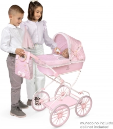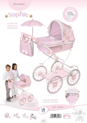 Romantická kolekce Sophie zaujme něžnými barvami a krásnými doplňky, které podtrhují elegantní španělský design. Tento kočárek je díky vysoké rukojeti vhodnější pro větší děti a skvěle se hodí jak na každodenní hraní, tak i pro malé sběratelky.