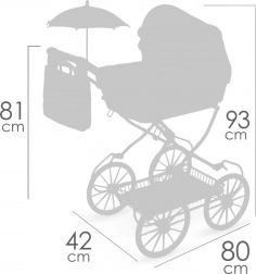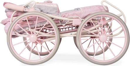 Stabilní konstrukce z kovu, plastu a textilu je lehká a snadno ovladatelná. Skládací boudička, praktický úložný košík a houpací pružiny dodávají hře na realistickém zážitku. Bohatá výbava zahrnuje vše potřebné pro stylové vyjížďky s panenkou.