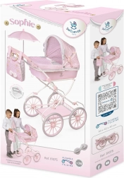 Elegantní dětský kočárek pro panenky z kolekce Sophie přináší romantický design ve světle růžové barvě se šedými a bílými detaily. Nabízí výškově nastavitelnou rukojeť 52–81 cm, skládací konstrukci, houpací pružiny a bohatou výbavu včetně tašky, slunečníku a matrace. Ideální pro větší slečny, které ocení snadnou manipulaci a precizní zpracování.