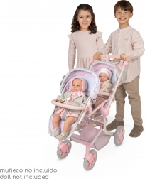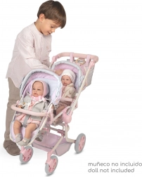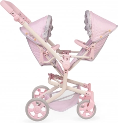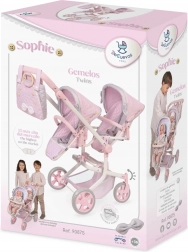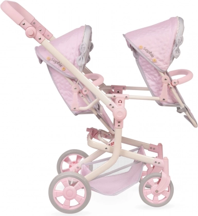 Hravý i praktický – tento skládací kočárek pro panenky je navržen pro pohodlné vožení dvou panenek najednou. Díky polohovatelným a odnímatelným korbičkám lze panenky umístit po i proti směru jízdy. Lehký kovovo-plastový rám, měkké textilie a jemný romantický vzhled kolekce SOPHIE z něj dělají skvělý doplněk dětského pokojíčku.