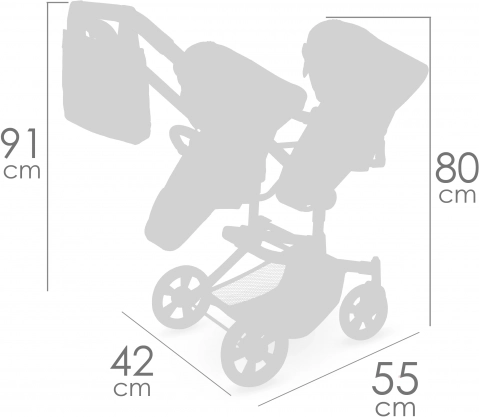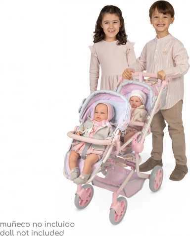 Skládací kočárek pro panenky pro dvojčata SOPHIE s taškou, výškově nastavitelný 91 cm