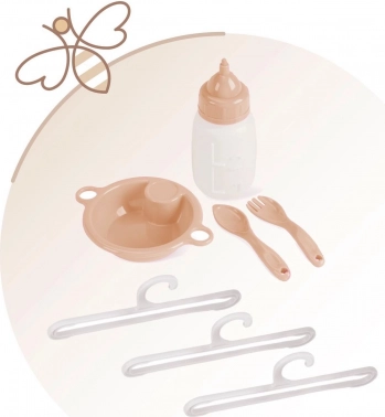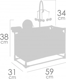 Součástí je vše, co malé maminky potřebují: kolotoč pro zabavení panenky, přebalovací pultík pro péči, jídelní židlička s lahvičkou, miskou a příborem a praktická šatna na zip s ramínky. Lůžková část se síťovaným okénkem umožní dětem mít panenku stále na očích a rozměrná základna zajistí komfort při hře.