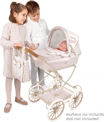 Polstrovaná korbička, skládací boudička a kryt na druky udrží panenku v bezpečí a pohodlí. Styl doplňuje odnímatelná taška v ladícím designu.