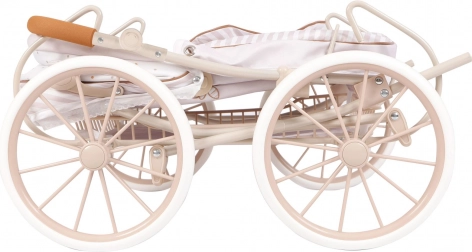 Kovový rám, velká paprsková kola a pružiny pro jemné houpání zajišťují hladkou jízdu a dlouhou životnost kočárku.