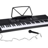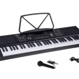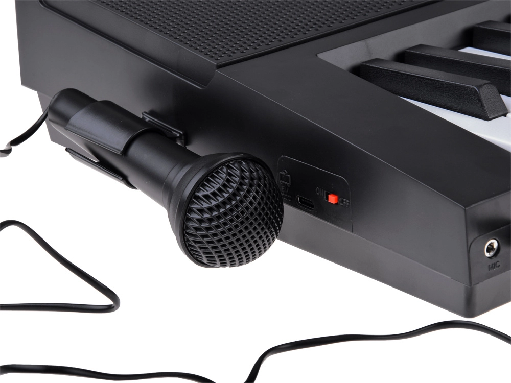 Praktická konektivita zahrnuje USB a vstup pro mikrofon. V balení je mikrofon, stojánek na noty a USB kabel. Díky kompaktním rozměrům, vestavěným reproduktorům a bočnímu tlačítku napájení je nástroj připravený kdykoli k hraní.