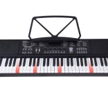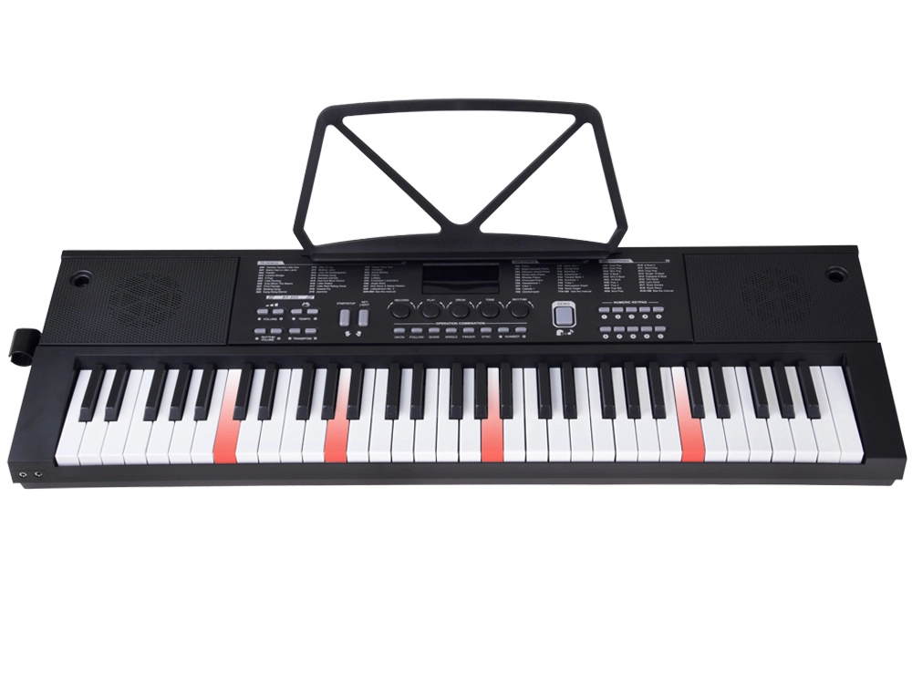Tento 61klávesový elektronický keyboard kombinuje bohatou výbavu s intuitivním ovládáním. Podsvícené klávesy vedou vaši hru krok za krokem, zatímco přehledný LCD displej urychluje volbu tónů, rytmů a funkcí. Povrch kláves s imitací dřeva zpříjemňuje dotyk a přispívá k pohodlnému hraní.