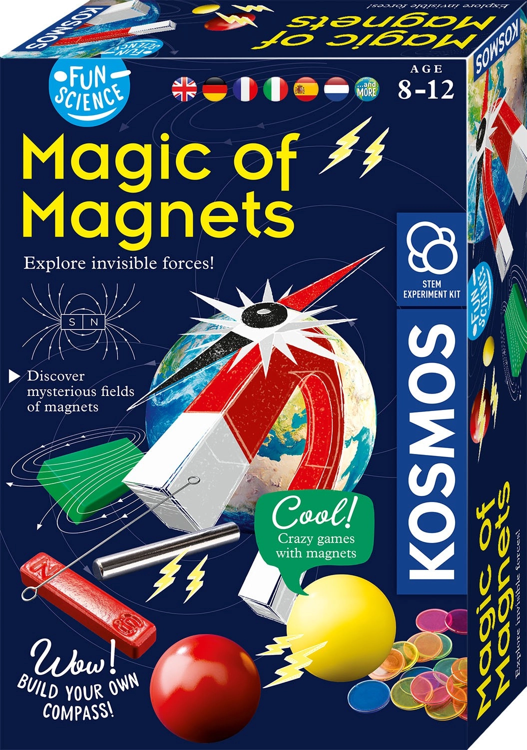 Objevte fascinující svět magnetismu s vědeckou sadou KOSMOS Kouzlo magnetů. Čeká vás 9 zábavných pokusů s magnety a bohatým příslušenstvím. Součástí je český návod ke stažení přes QR kód i tištěný anglický návod s českým překladem. Ideální pro zvídavé děti od 8 do 12 let.