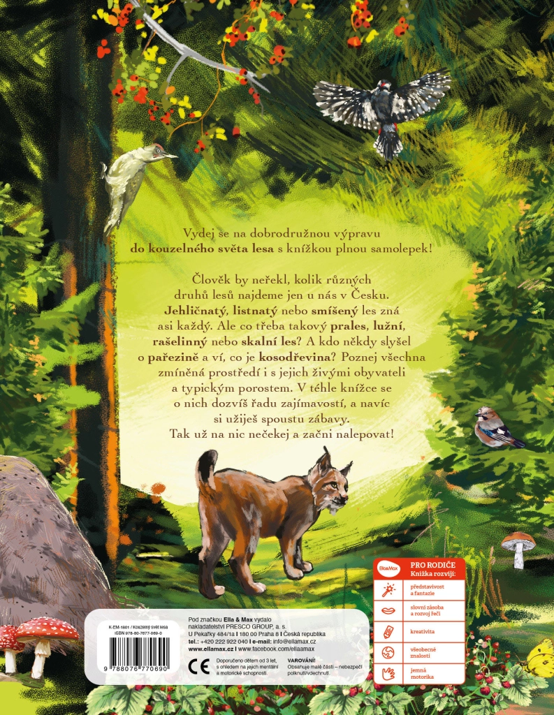 Ponořte se do fascinujícího světa českých lesů a objevte jejich obyvatele i typický porost. Tato kreativní kniha nabízí přehled různých prostředí – jehličnatých, listnatých i smíšených lesů, ale také pralesa, lužního, rašelinného či skalního lesa. Dozvíte se, co je pařezina, i jak vypadá kosodřevina.