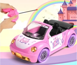 Stylové růžové autíčko cabrio pro panenky kombinuje atraktivní vzhled s jednoduchým ovládáním. Děti zvládnou směr i zatáčení dvěma tlačítky, přičemž přední světlomety se při jízdě vpřed rozsvítí pro realističtější zážitek. Ideální do dětského pokoje na hladké povrchy.
