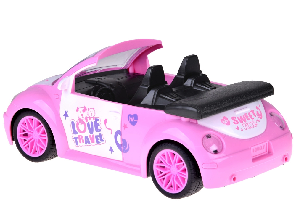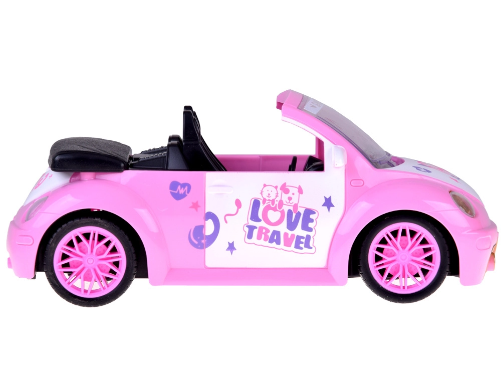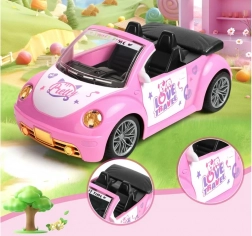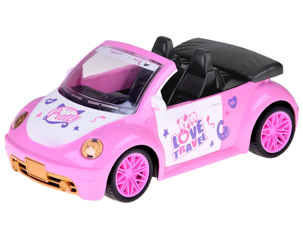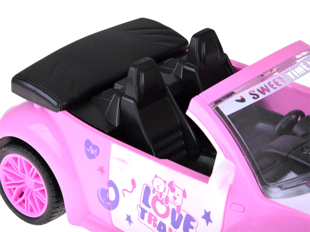 Otevřený kabriolet s detailním interiérem a dekorativními nálepkami skvěle doplní svět panenek a figurinek.
