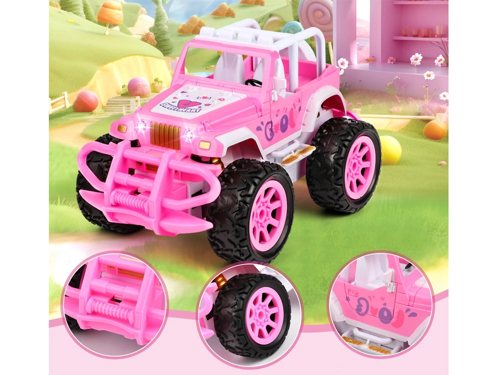 Stylové růžové RC terénní auto pro děti kombinuje atraktivní design s dynamickou jízdou. Díky jednoduchému dálkovému ovladači se děti rychle naučí řídit dopředu, dozadu i zatáčet, a přitom rozvíjejí jemnou motoriku a logické myšlení. Světelné efekty dodávají jízdě realističnost a ještě větší zábavu.