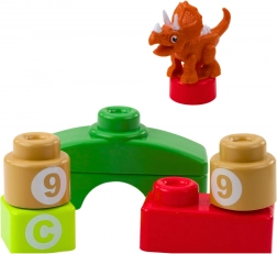 Tato dětská stavebnice s dinosaury kombinuje kreativní hraní a ranou výuku. Každá kostka je opatřena písmenem nebo číslicí, takže si děti procvičí rozeznávání znaků, barvy i první počty – a to formou hry. Velké dílky jsou ideální pro malé ruce a podporují jemnou motoriku i koordinaci oko–ruka.