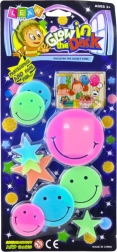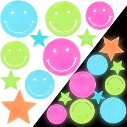 Veselá sada fluorescenčních samolepek rozzáří dětský pokojík a navodí pohádkovou atmosféru. Po nasvícení vyniknou jejich jemné světélkování ve tmě, barevné smajlíky a hvězdičky v různých velikostech. Díky samolepicím pěnovým prvkům drží spolehlivě na zdi, stropu i nábytku a lze je snadno odstranit bez stop. Vyrobeno z bezpečných, netoxických materiálů splňujících evropské normy.