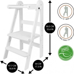 Skládací učící věž LOFTY pomáhá dětem zapojit se do každodenních činností – od vaření po čištění zubů. Je vyrobena z kvalitní překližky s ověřenou bezpečností bez formaldehydu, takže splňuje nároky moderní domácnosti. Díky promyšlené konstrukci se snadno přenáší i skladuje.