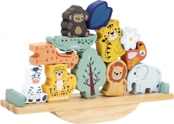 Vydejte se na dobrodružnou výpravu do světa safari s dřevěnou balanční hrou, která rozvíjí jemnou motoriku, trpělivost a smysl pro rovnováhu. Děti budou na houpající se plošinu skládat roztomilá zvířátka jako lva, zebru, žirafu či opičku a trénovat koordinaci i soustředění. Hra je zábavná pro jednotlivce i ve dvojici a díky kvalitnímu dřevěnému zpracování a veselým barvám ozdobí každý dětský pokojíček.