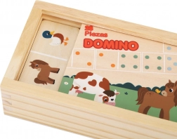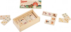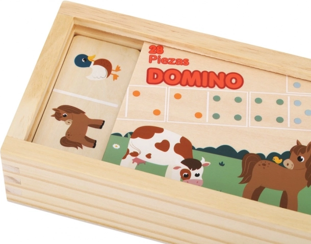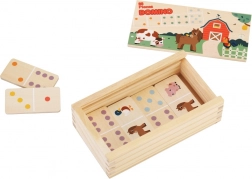 Objevte kouzlo oboustranného dřevěného domina z farmy, které nabízí dva způsoby zábavy v jedné hře. Menší děti skládají podle veselých obrázků zvířátek, větší si zahrají klasické domino s puntíky a nenásilně trénují počítání a logiku. Kvalitní přírodní dřevo, příjemné pastelové barvy a praktický dřevěný box s víčkem z něj dělají krásnou a odolnou hračku pro děti od 2 let.