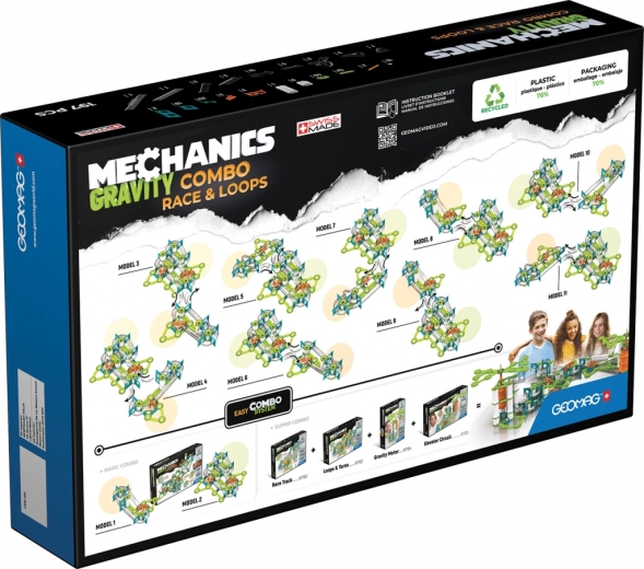 GEOMAG Mechanics Gravity Combo je chytrá kuličková dráha, kde hlavní roli hraje gravitace a magnetismus. Sestavte rozmanité tratě, sledujte pohyb ocelových kuliček a experimentujte s převody, spouštěči a směrováním toku kuliček. Každé přestavění přináší nové výzvy a radost z objevování.